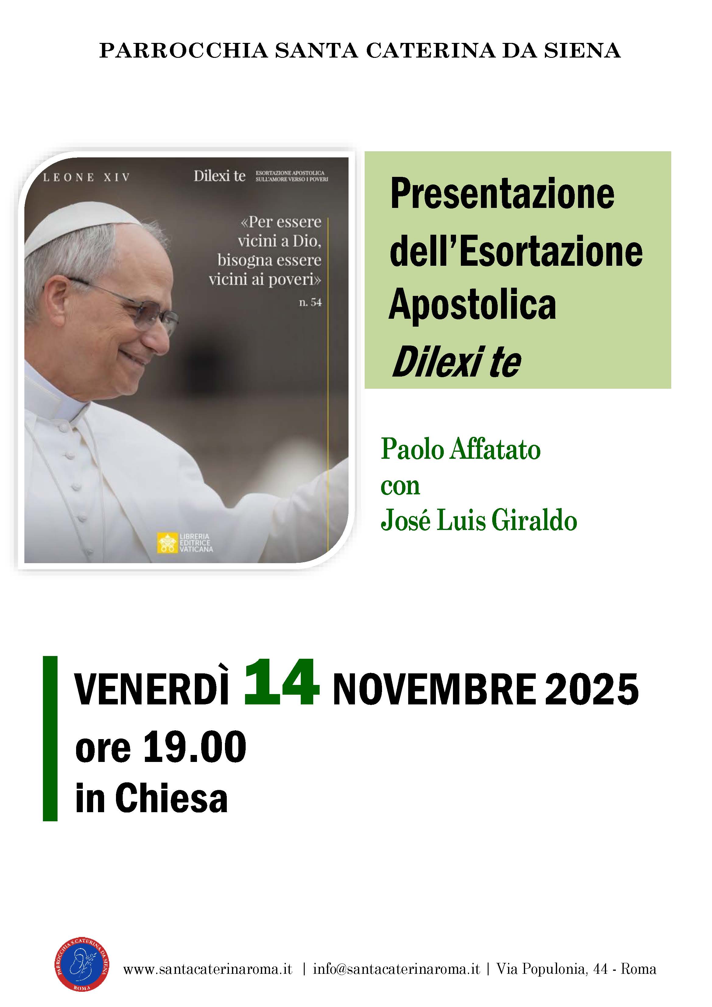 venerdì 14 novembreIX Giornata mondiale dei poveri Presentazione dell'Esortazione Apostolica Dilexi te di Papa Leone XIV | |