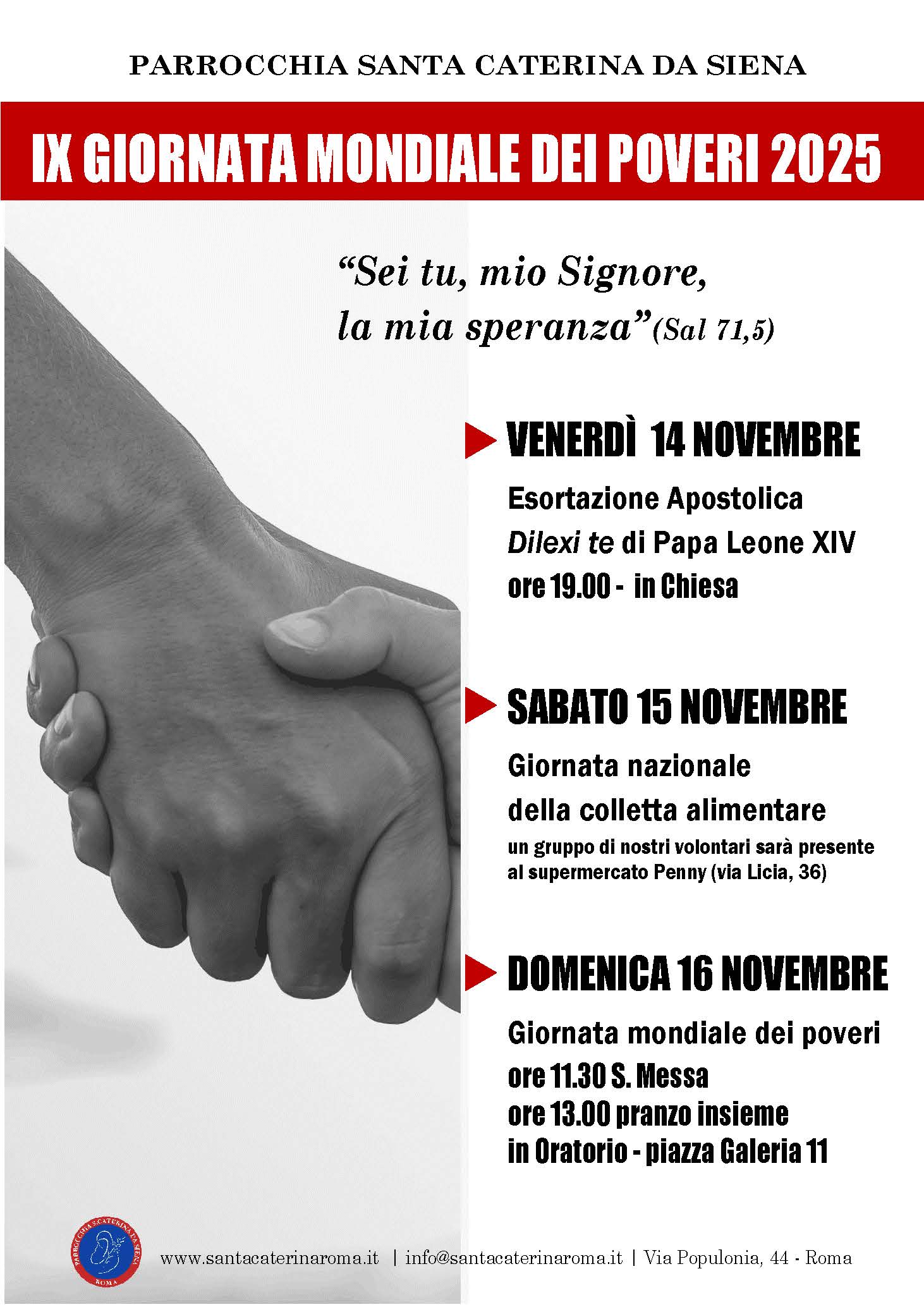 domenica 16 novembreAnniversario di consacrazione della nostra chiesa. IX Giornata mondiale dei poveri ore 11.30 S. Messa | |